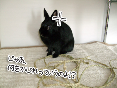 >どうしてうさぎさんって、せっかくの囓り木は興味もしめさず、囓ってはいけないモノを囓るんでしょうね。