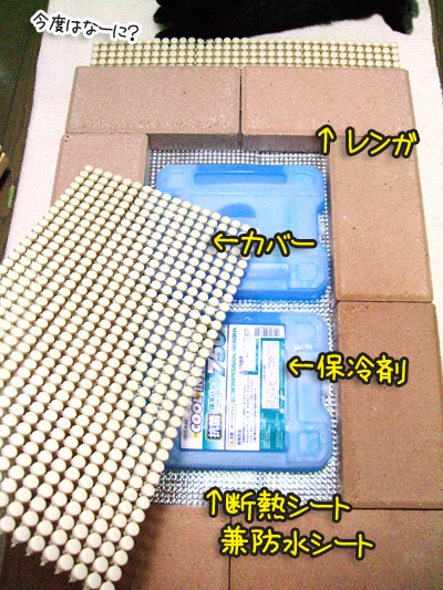 ポイント カバーはかぶせると、レンガの高さとほぼ一定になります。レンガのわくにぴったりはまるので、うさぎさんの力ではどかせません。